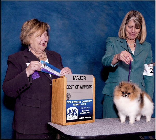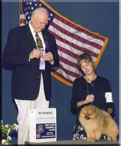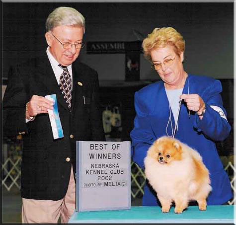 Windy Hill Mite-E-Might Acts Up "Mite" Mite is a multiple champion producer and father or grandfather to our next generation of Pomeranians. He was known to put a short muzzle and correct coat on his offspring |