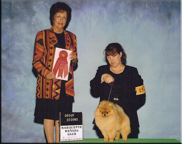 CH Char's All That Jazz ROM "Louie" CH Finch's Nicely Packaged Deal ROM x Char's Too Hot T'Handle A grandson of BIS BISS Am/Can CH Chriscendo Call To Arms HOF GC ROMS - Colt Louie is a group winner and owner handled to multiple group placings. Louie is the good ole boy here at Char's Poms. Always a dependable producer of high quality puppies. He has proven himself as a top producer earning his ROM title. OFA certified NORMAL Patella's and Thyroid. |