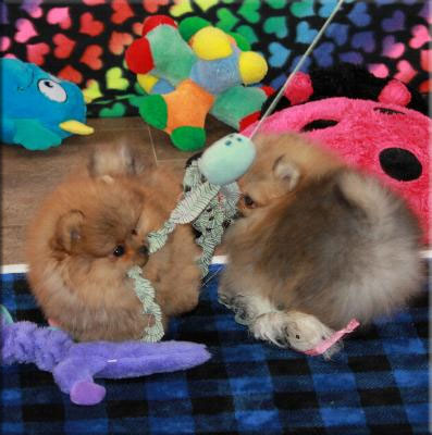 | Puppy photos are taken between four and five months of age. Many breeders sell puppies at eight weeks of age but I prefer to give more time for development. My puppies have excellent temperaments, partially due to the extra time and care from their mothers. This natural weaning process allows my puppies to learn so much from their moms including the beginning stage of house training. We continue the training until the puppies go to the new home. We also train them to be good with grooming and tooth brushing. The price of each puppy is based on overall quality according to the Pomeranian standard of the American Kennel Club. Over the past 30 years, the focus in my breeding program has always been health and personality first, then beauty. Companion simply means that the puppy will not be a show or breeding dog. Their one job is to love their family. If looking for a puppy to show, please email me. | ||